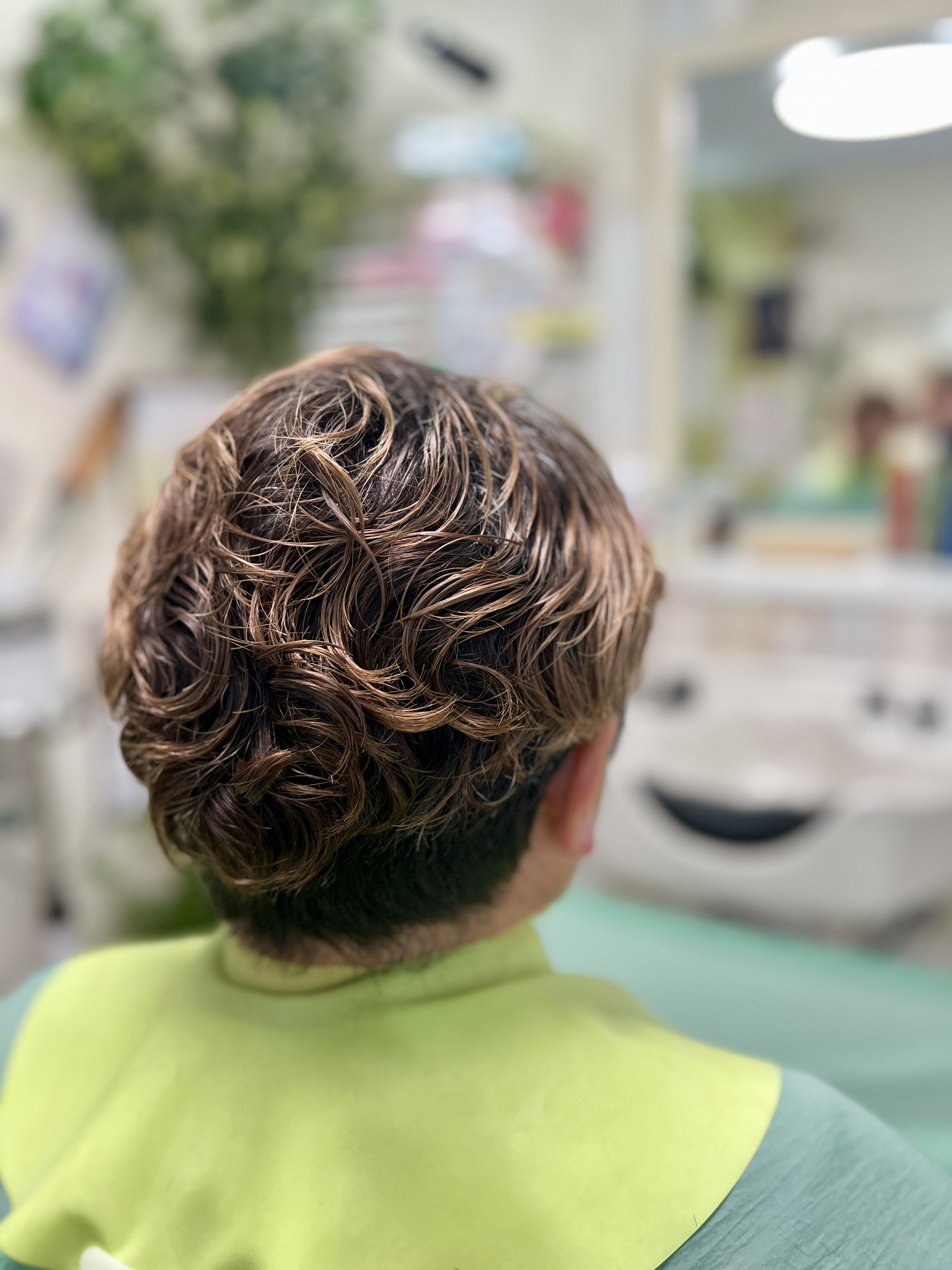 パーマのカールがまだきれいに残っている。