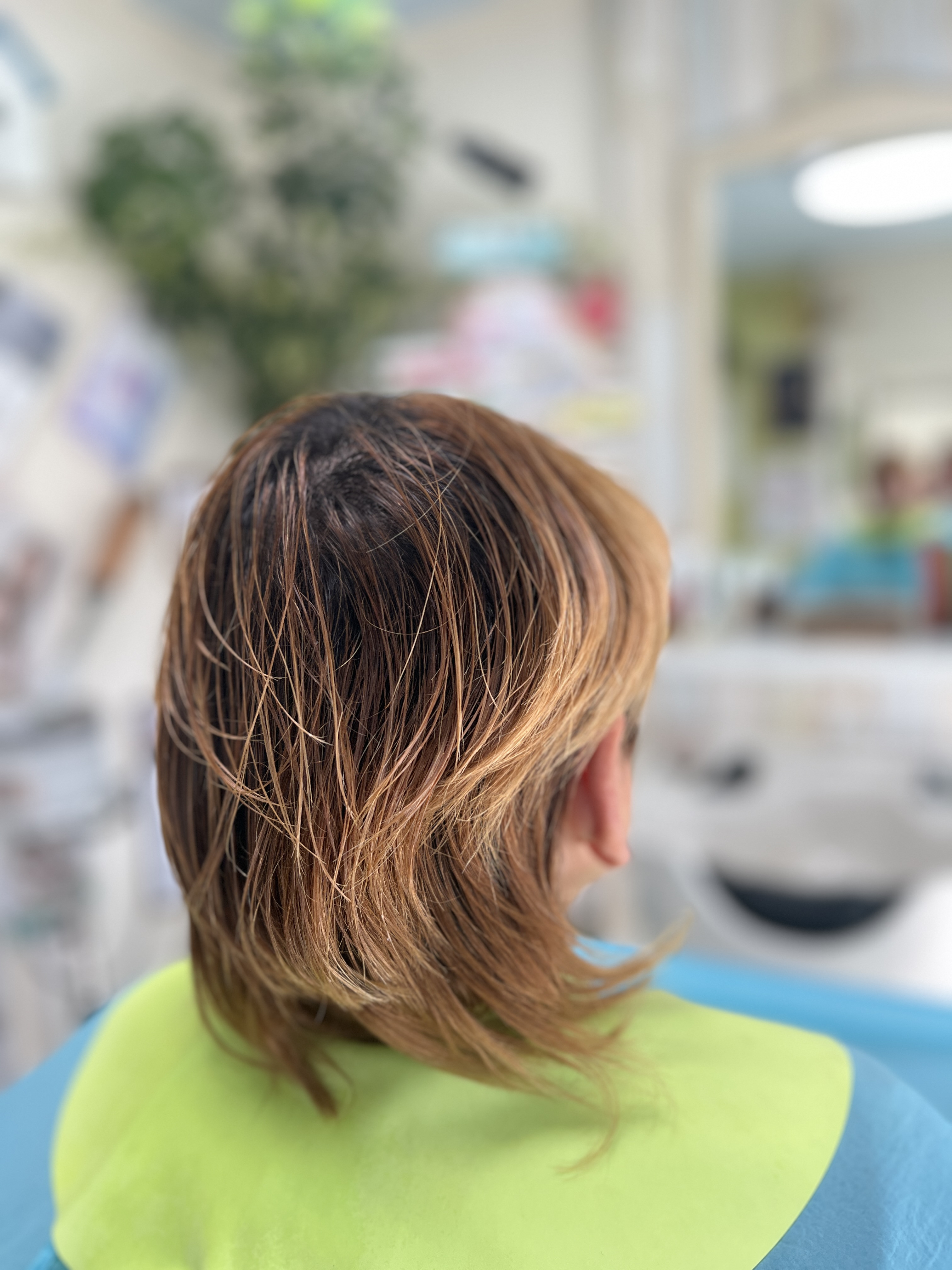 伸びて重くなった部分を骨格に合わせて削り、カラーリングで髪の質感を健やかに整えました。