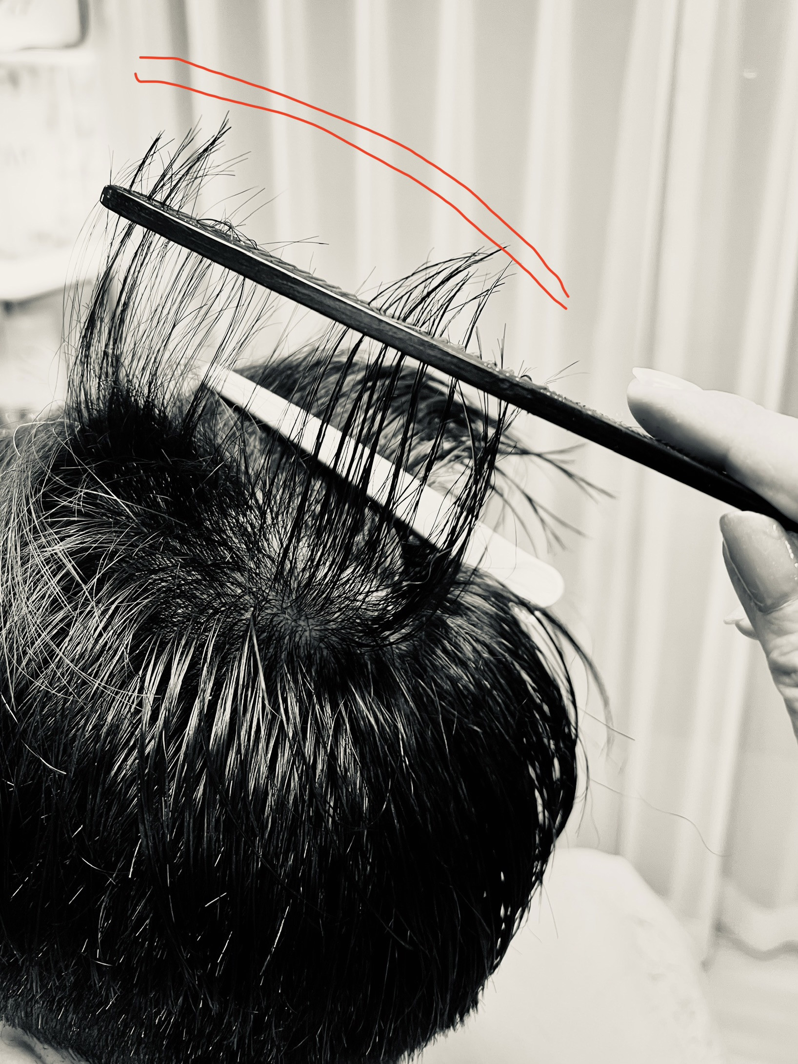 毛量とシルエットを整えています。